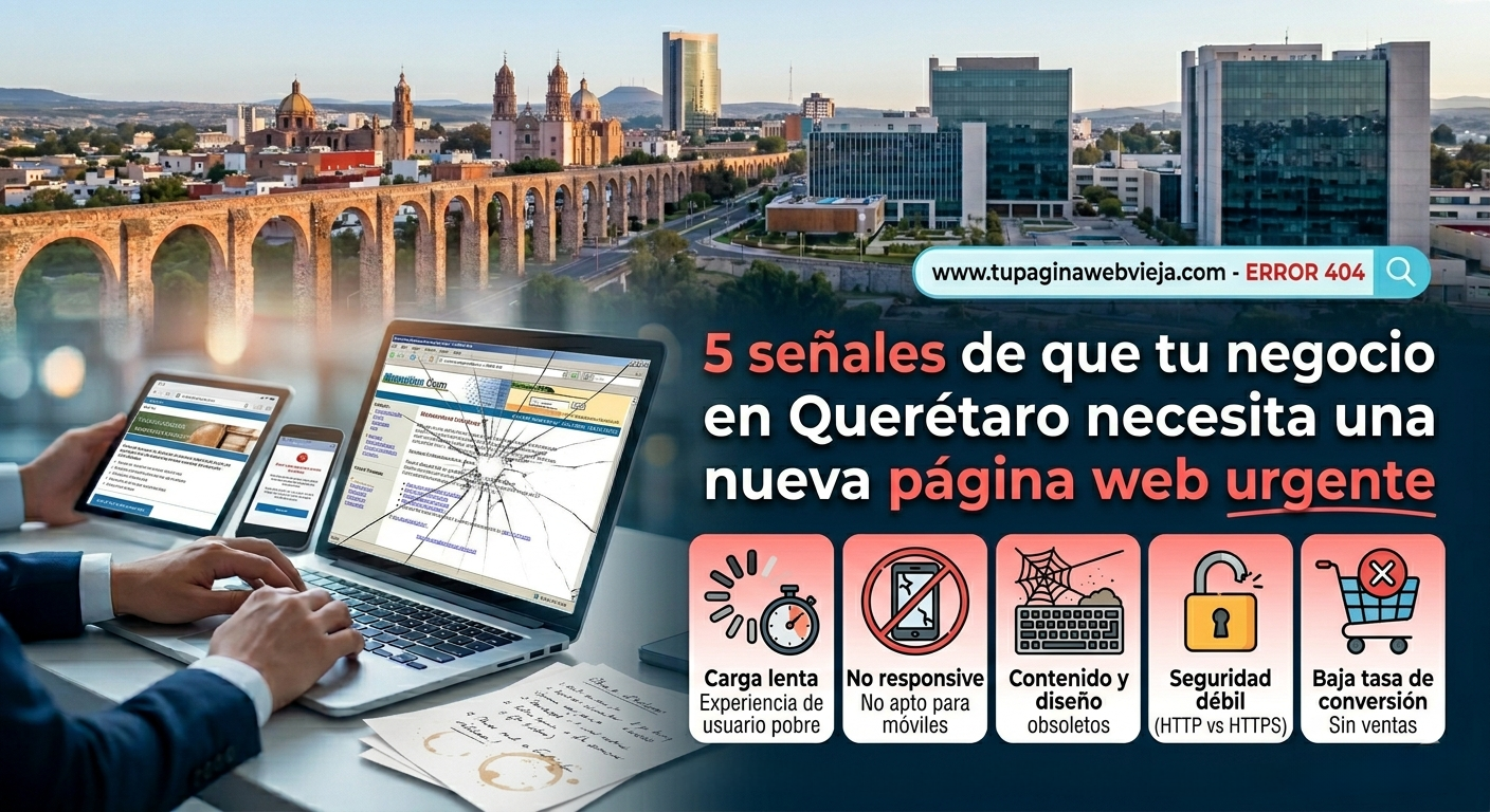 Si tienes un negocio en Querétaro o San Juan del Río y tu sitio web lleva más de 3 años sin actualizarse, es momento de hacer un diagnóstico honesto. Aquí las 5 señales más claras de que necesitas un cambio urgente.